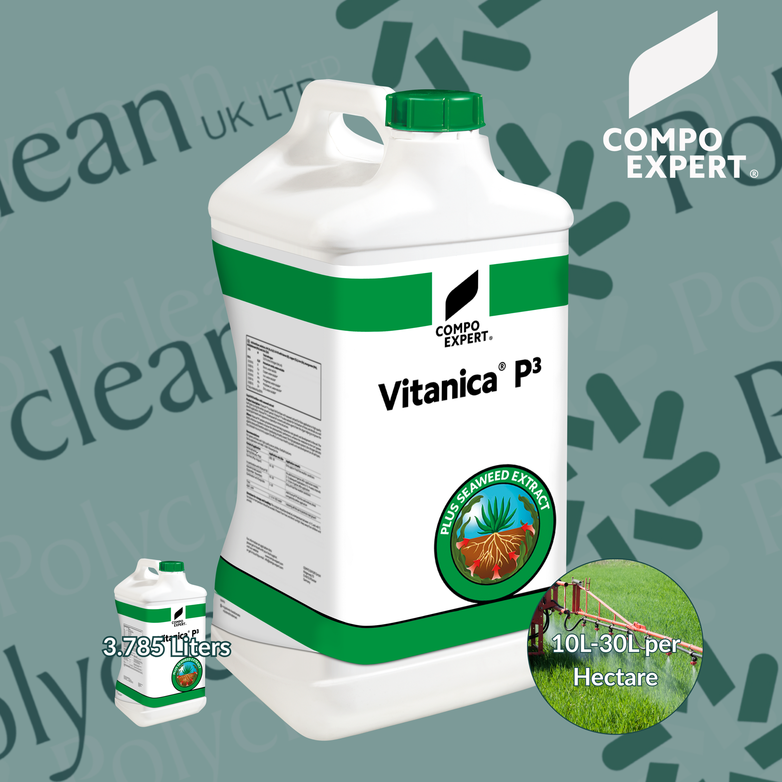 Vitanica® P3 is an innovative liquid NK fertiliser derived from seaweed extracts (Ecklonia maxima), enriched with a comprehensive range of micronutrients designed for foliar application on high-quality turf grass throughout the entire growth period. This advanced formulation is also ideal for the fertilisation of trees and shrubs via soil drench application.