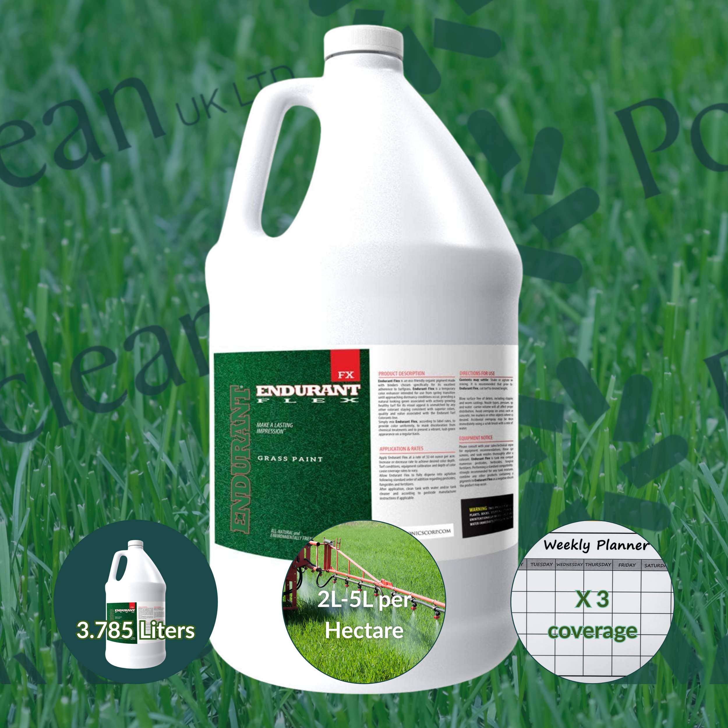 Endurant Flex is a pigment specially formulated for use on turfgrass during actively growing phases and through transitions. Flex is similar to Endurant's popular TE (Turf Enhancer) in that it's a pigment made for actively growing grass. However, Flex has a new darker, richer colour than TE.